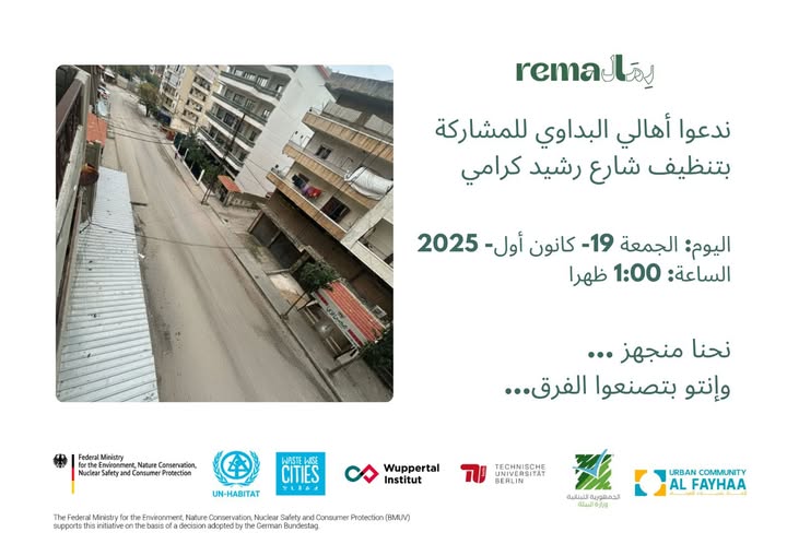 ضمن مشروع “رمال” وبالتعاون مع برنامج الأمم المتحدة للمستوطنات البشرية (UN-Habitat)، ينفّذ فريق المكتب التقني في اتحاد بلديات الفيحاء حملة لتنظيف شارع رشيد كرامي في البداوي، بمشاركة الأهالي والمتطوّعين وبدعم من البلديات.
